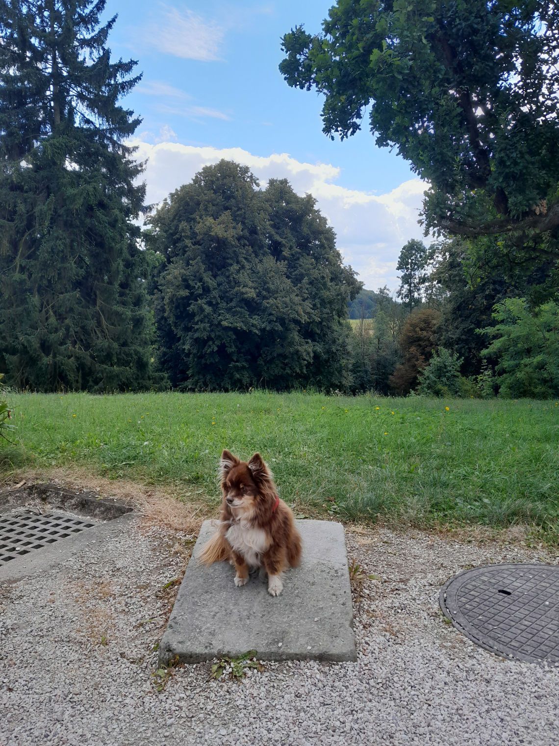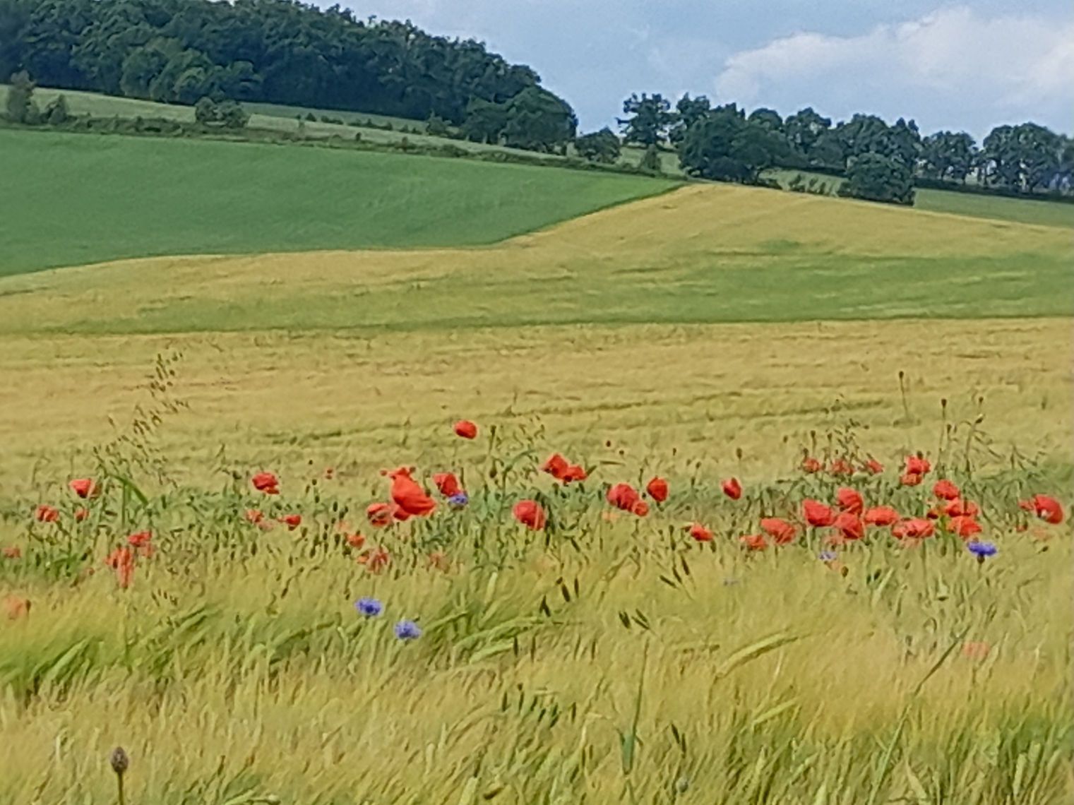Die Wasserberg- Runde ist einer unserer beliebtesten Hunde- Spaziergänge. Sie ist ca. 3,5 km lang mit ca. 50m Höhenunterschied. Von der Bank auf dem Wasserberg bietet sich der folgende Ausblick: